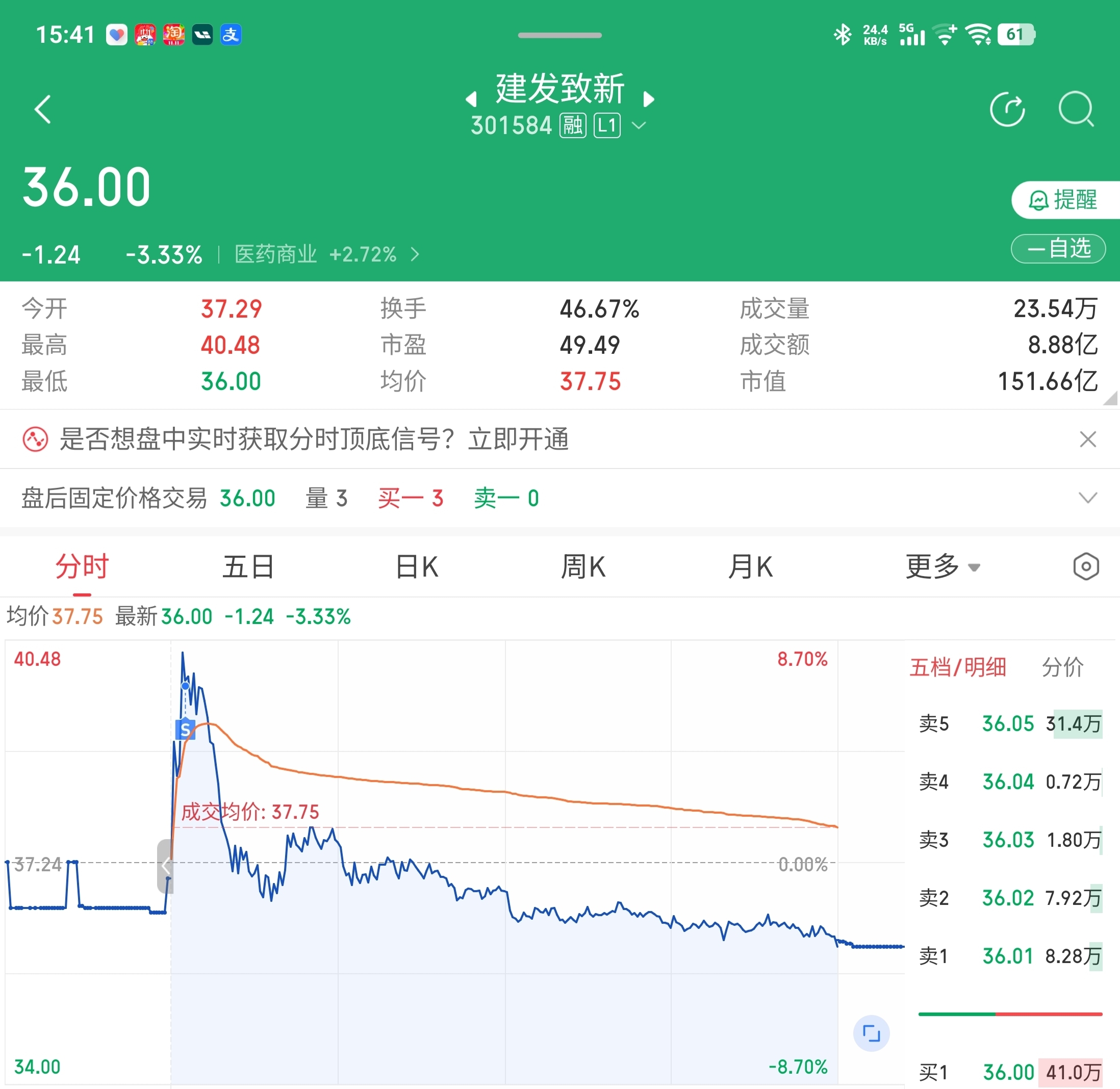 $建发致新(SZ301584)$ 还好,虽然不是最高点,我恐高。