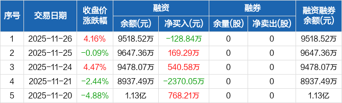 建发致新:融资净偿还128.84万元,融资余额9518.52万元(11-26)