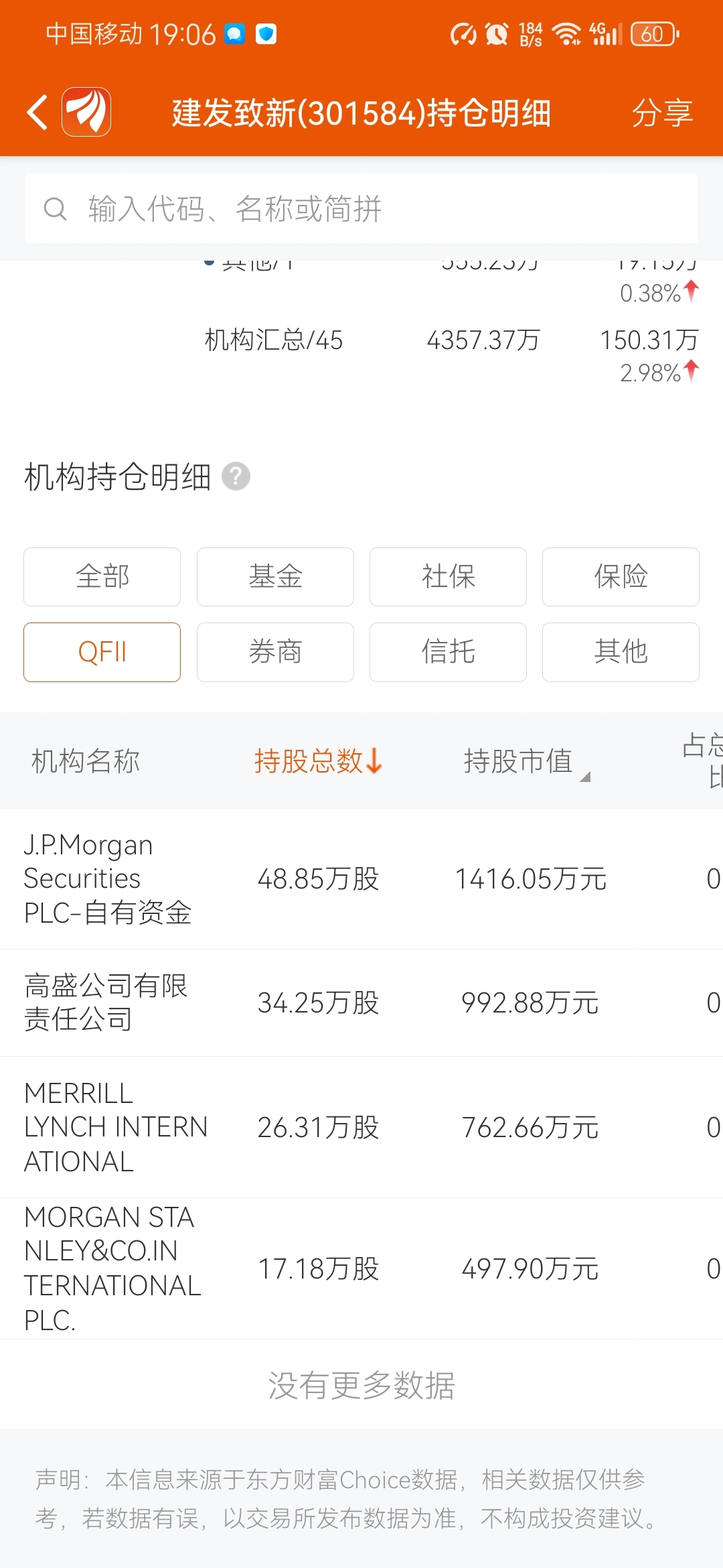 $建发致新(SZ301584)$ 看看机构的持仓吧。那些唱空的居心何在?这个片儿是个优质票。个人感觉30基本就是底部了。短期的压力位看到37。冲破40用不了太久。相信他拿住他跟随他。