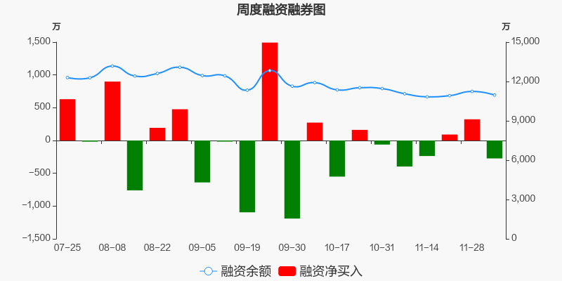 佳力奇本周(2025/12/01-2025/12/05)累计跌幅达1.24%,截至12月5日最新股价报收45.51元。从增量上来看,12月1日至12月4日融资买入交易规模900.71万元,融资偿还规模1174.1万元,期内融资净偿还273.39万元。从存量上来看,截止12月7日,佳力奇融资融券余额1.1亿元,其中融资余额规模1.1亿元,融券余额规模0元。