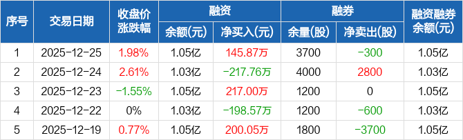 佳力奇:融资净买入145.87万元,融资余额1.05亿元(12-25)