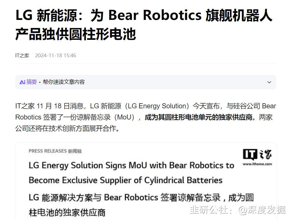 对应的A股公司是哪家?谁能跟着LG新能源的独家供货协议一起给特斯拉,OpenAi这些人形机器人的巨头们供货?