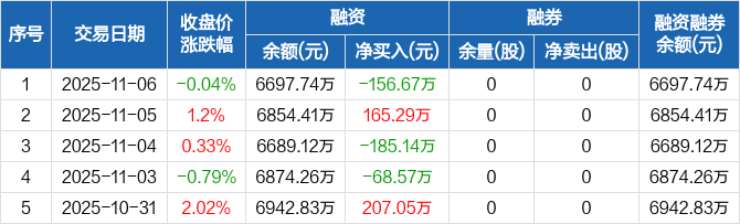 中瑞股份:融资净偿还156.67万元,融资余额6697.74万元(11-06)