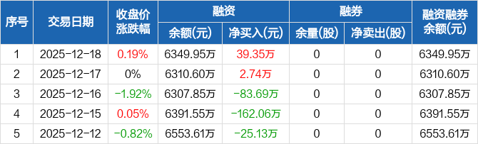 中瑞股份:融资净买入39.35万元,融资余额6349.95万元(12-18)