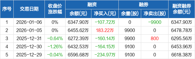 中瑞股份:融资净偿还107.72万元,融资余额6347.9万元(01-06)