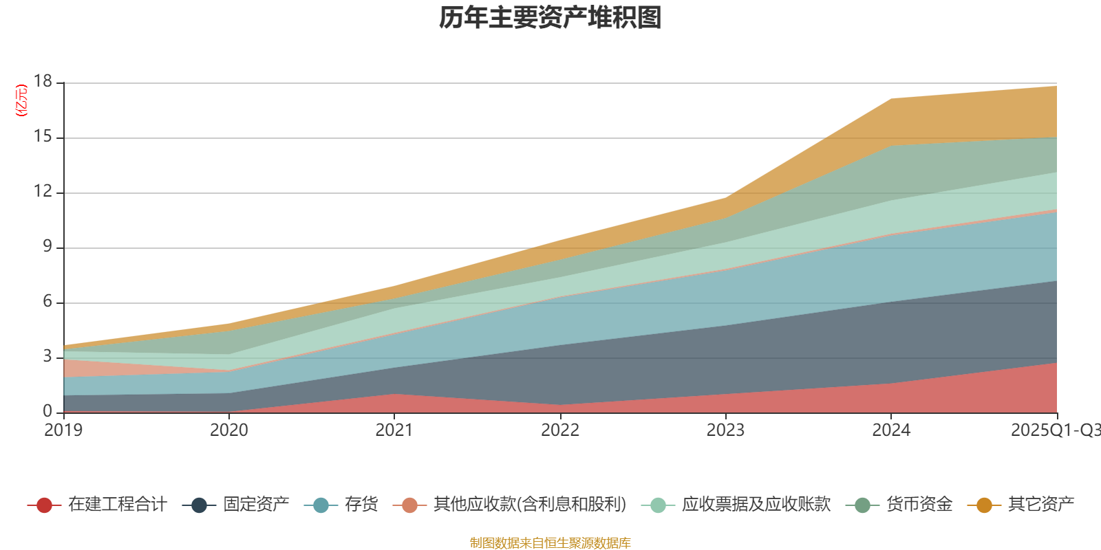资产重大变化方面,截至2025年三季度末,公司货币资金较上年末减少35.6%,占公司总资产比重下降6.64个百分点;在建工程合计较上年末增加70.9%,占公司总资产比重上升5.95个百分点;固定资产较上年末增加0.49%,占公司总资产比重下降0.89个百分点;应收票据及应收账款较上年末增加10.84%,占公司总资产比重上升0.69个百分点。