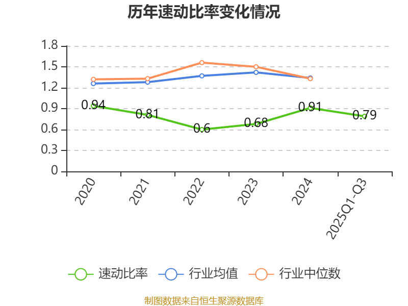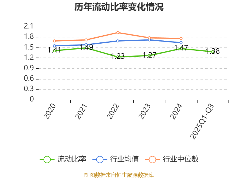 2025年前三季度,公司流动比率为1.38,速动比率为0.79。