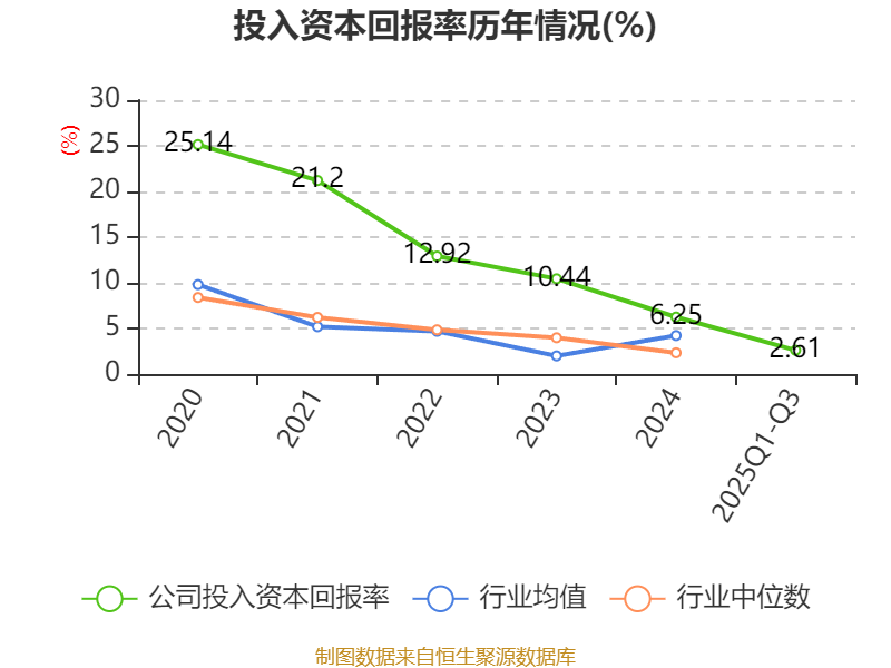 盈利能力方面, 2025年前三季度公司加权平均净资产收益率为3.03%,同比下降2.23个百分点。公司2025年前三季度投入资本回报率为2.61%,较上年同期下降1.9个百分点。