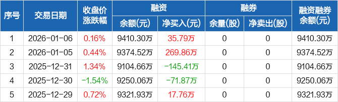 美新科技:融资净买入35.79万元,融资余额9410.3万元(01-06)