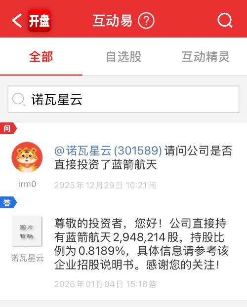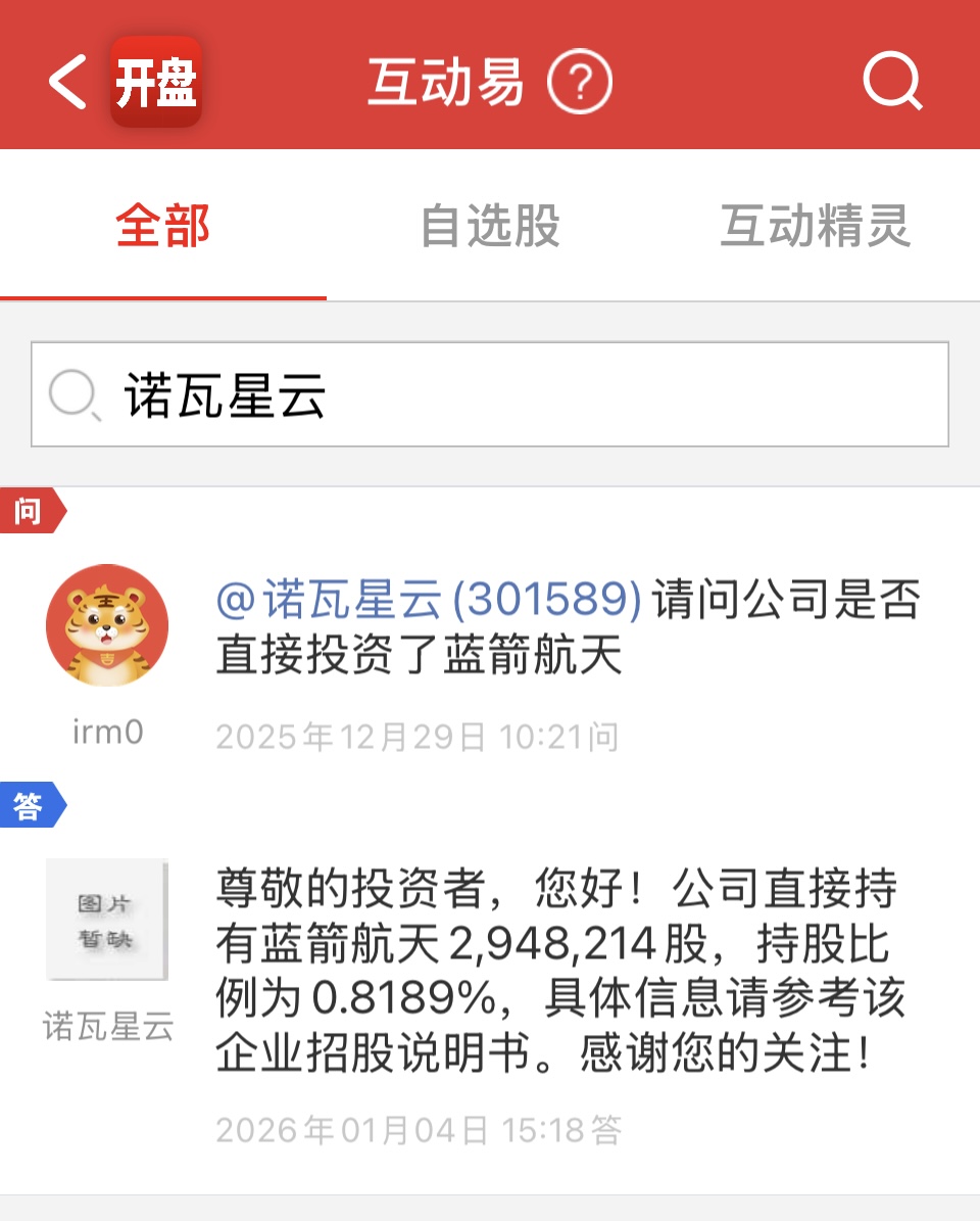 $诺瓦星云(SZ301589)$ 根据公开信息 诺瓦星云直接和间接共持有蓝箭航天约1.05%的股权 共约380万股 投资金额保守估计2亿元 金风科技间接持有蓝箭约4%股权 大家算算市场欠诺瓦几个涨停 保守估计至少50% 情绪到位可以翻倍