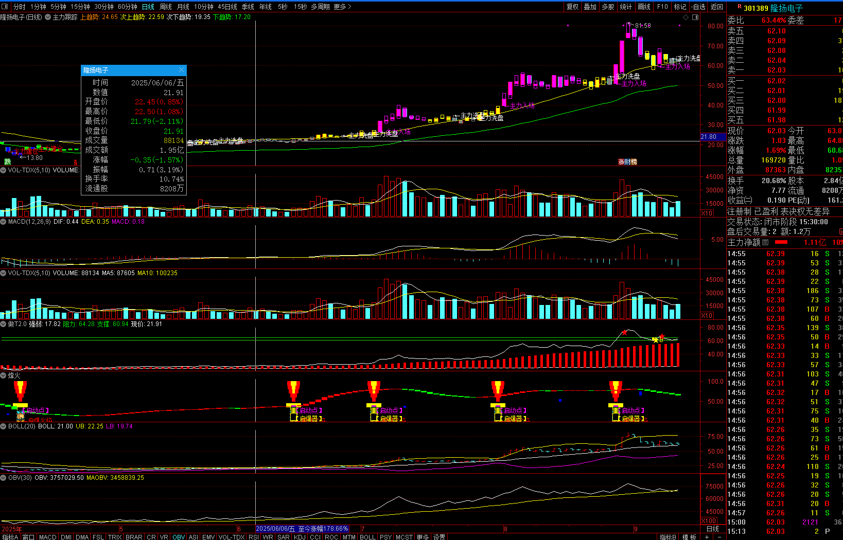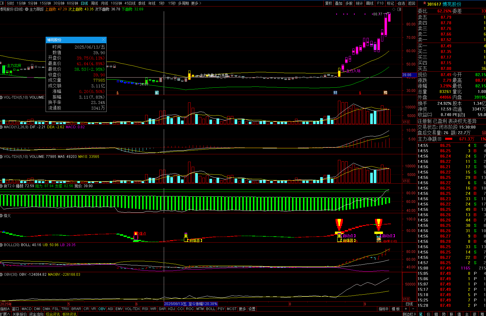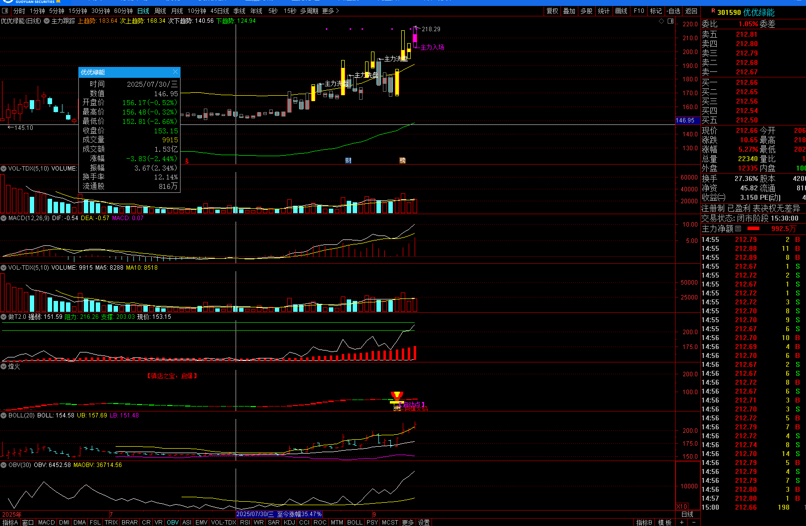 优优绿能在走加速。股价已经站上布林线上轨之上。布林线开口极速张嘴加大。加速在即。