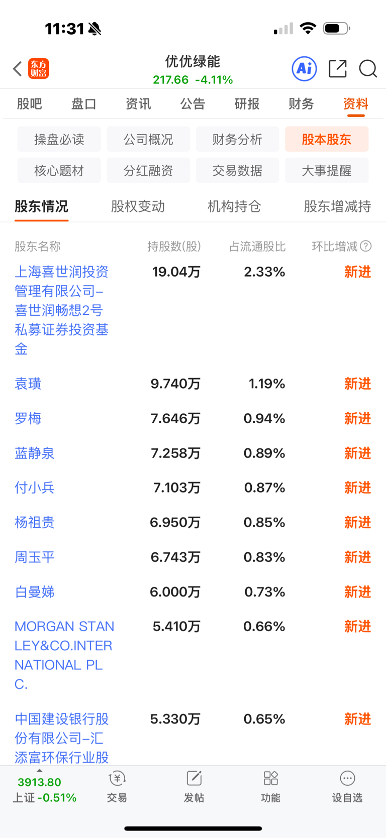 $优优绿能(SZ301590)$