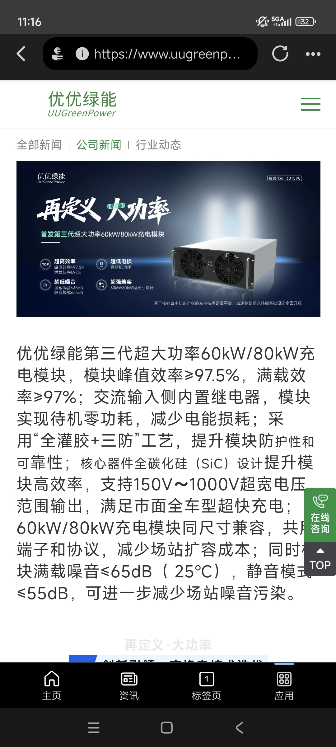 优优绿能发布第三代超大功率60KW/80KW充电模块!详见优优绿能公司官网202