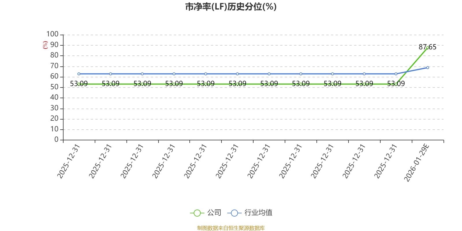 市盈率、市净率为负时,不显示当期分位数,会导致折线图中断。