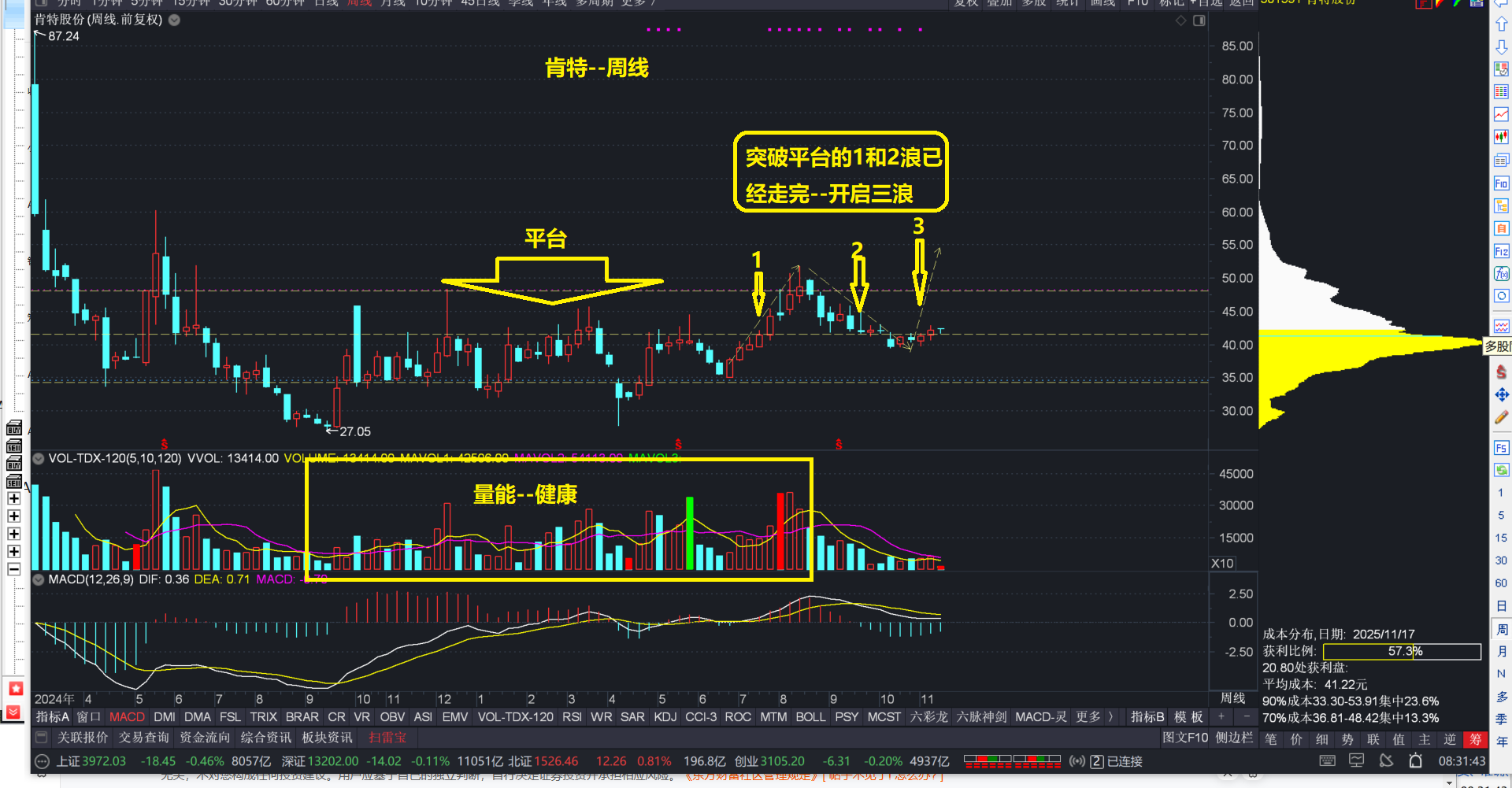 肯特股份--周线突破带回踩结构--1和2浪完成开启3浪【日线小平台也是突破带回踩】--细节可以看图!!