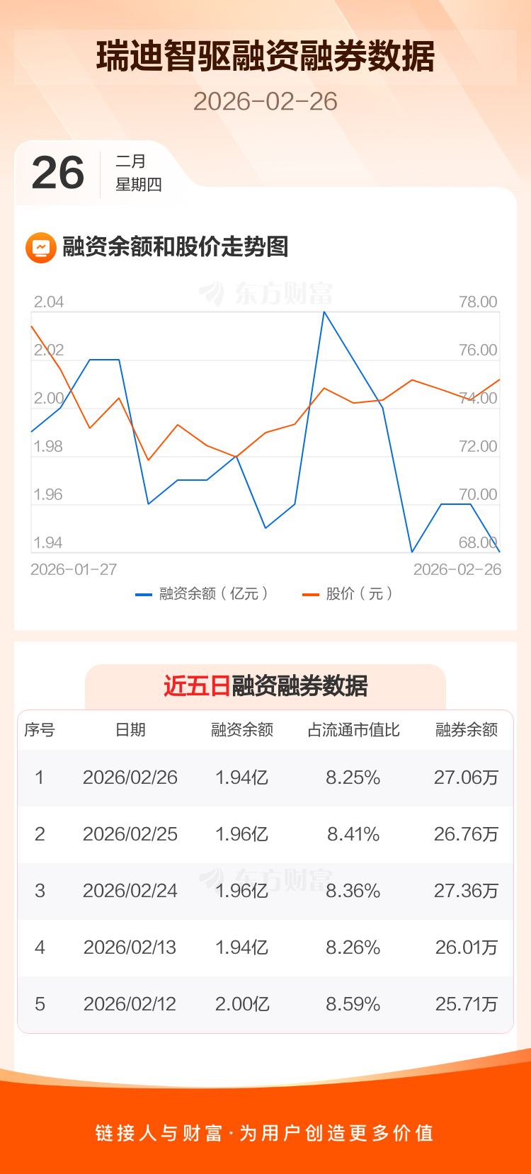 交易所最新数据显示,瑞迪智驱于2026年2月26日获融资买入539.20万元,融资偿还702.16万元,当日融资净偿还162.97万元。目前,该股融资余额1.94亿,占流通市值比例为8.25%。