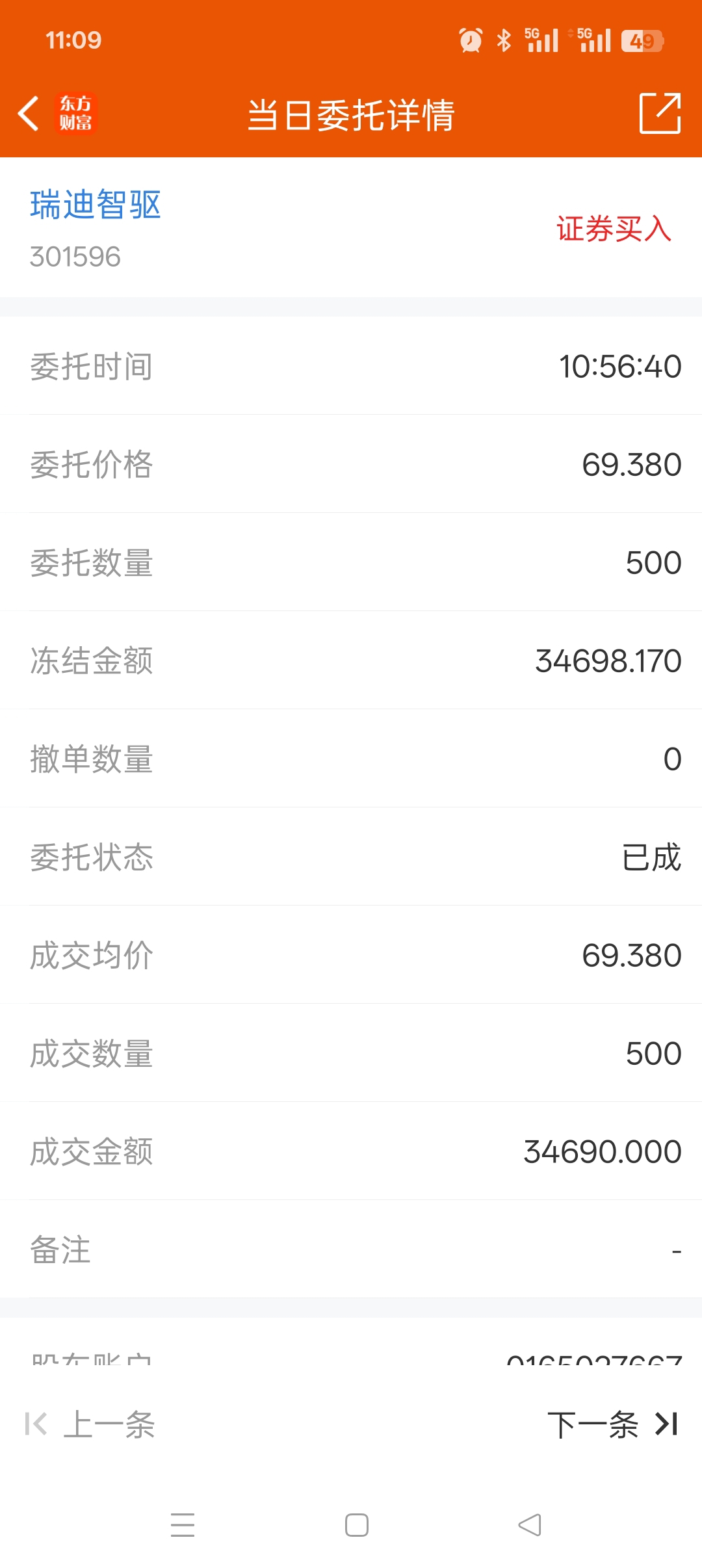 $瑞迪智驱(SZ301596)$ 我买了5手