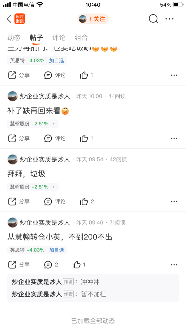 这个人昨天早上190割肉慧翰,然后79追涨英思特又吃了7点大面,精神己出现癫狂状