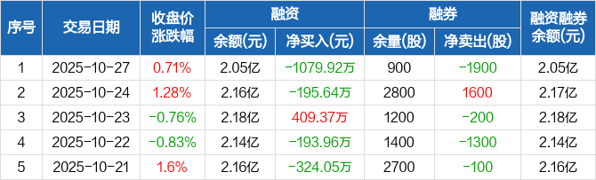慧翰股份:融资净偿还1079.92万元,融资余额2.05亿元(10-27)
