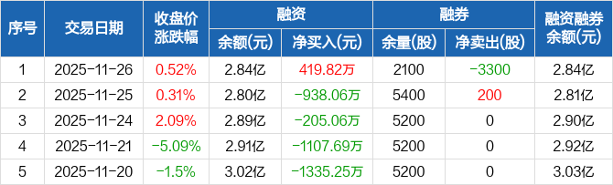 慧翰股份:融资净买入419.82万元,融资余额2.84亿元(11-26)