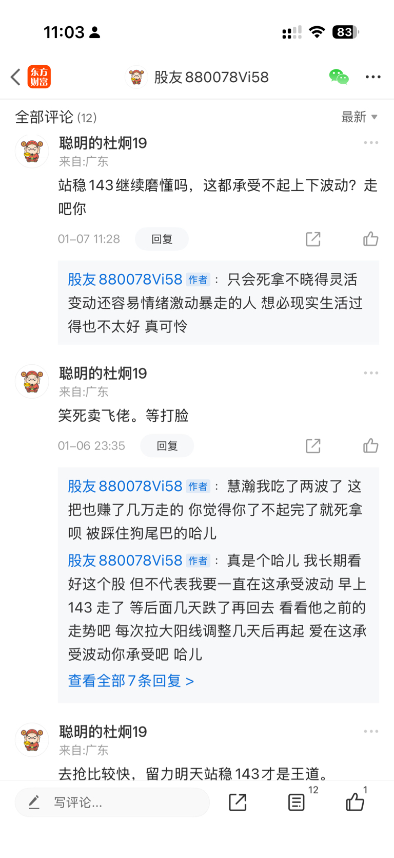 温馨提示: 1.根据《证券法》规定,禁止编造、传播虚假信息或者误导性信息,扰乱证券市场;2.用户在本社区发表的所有资料、言论等仅代表个人观点,与本网站立场无关,不对您构成任何投资建议。用户应基于自己的独立判断,自行决定证券投资并承担相应风险。《东方财富社区管理规定》