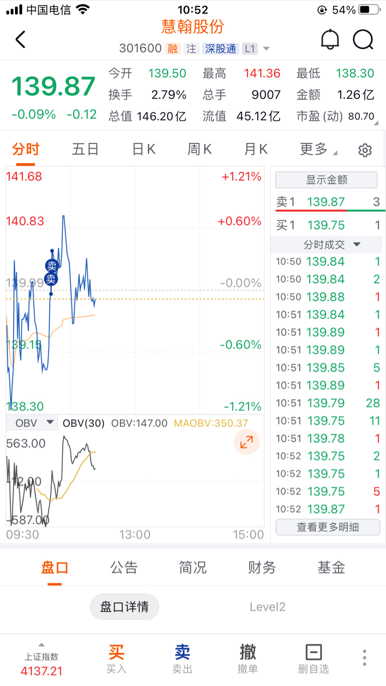 140..34清仓换香浓,卖飞3.2点浮盈7.2点
