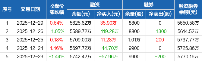 惠通科技:融资净买入35.9万元,融资余额5625.62万元(12-29)