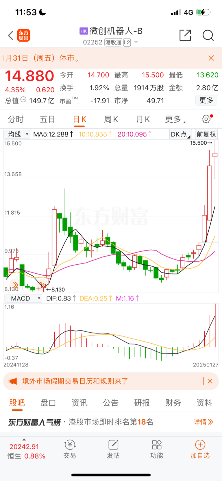 微创机器人暴力拉升,我就不信你不涨