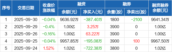 超研股份:融资净偿还387.4万元,融资余额9636.92万元(09-30)