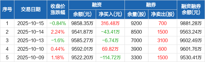 超研股份:融资净买入316.48万元,融资余额9858.35万元(10-15)