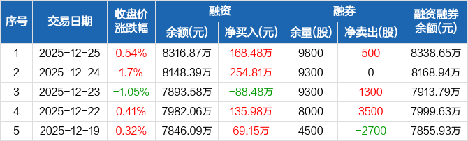 超研股份:融资净买入168.48万元,融资余额8316.87万元(12-25)