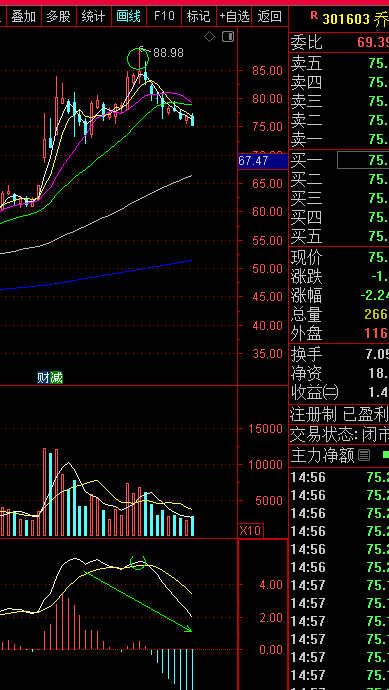 乔锋智能首次出现顶背离。三季度最强的几个概念军工 机器人 PCB 乔峰似乎都有。3倍5倍10倍的股都有,但乔峰涨幅一般。没有翻倍。还是资金说了算。市场的本质是博弈,其他都是浮云。股市里重要的是操作,而不是研判。