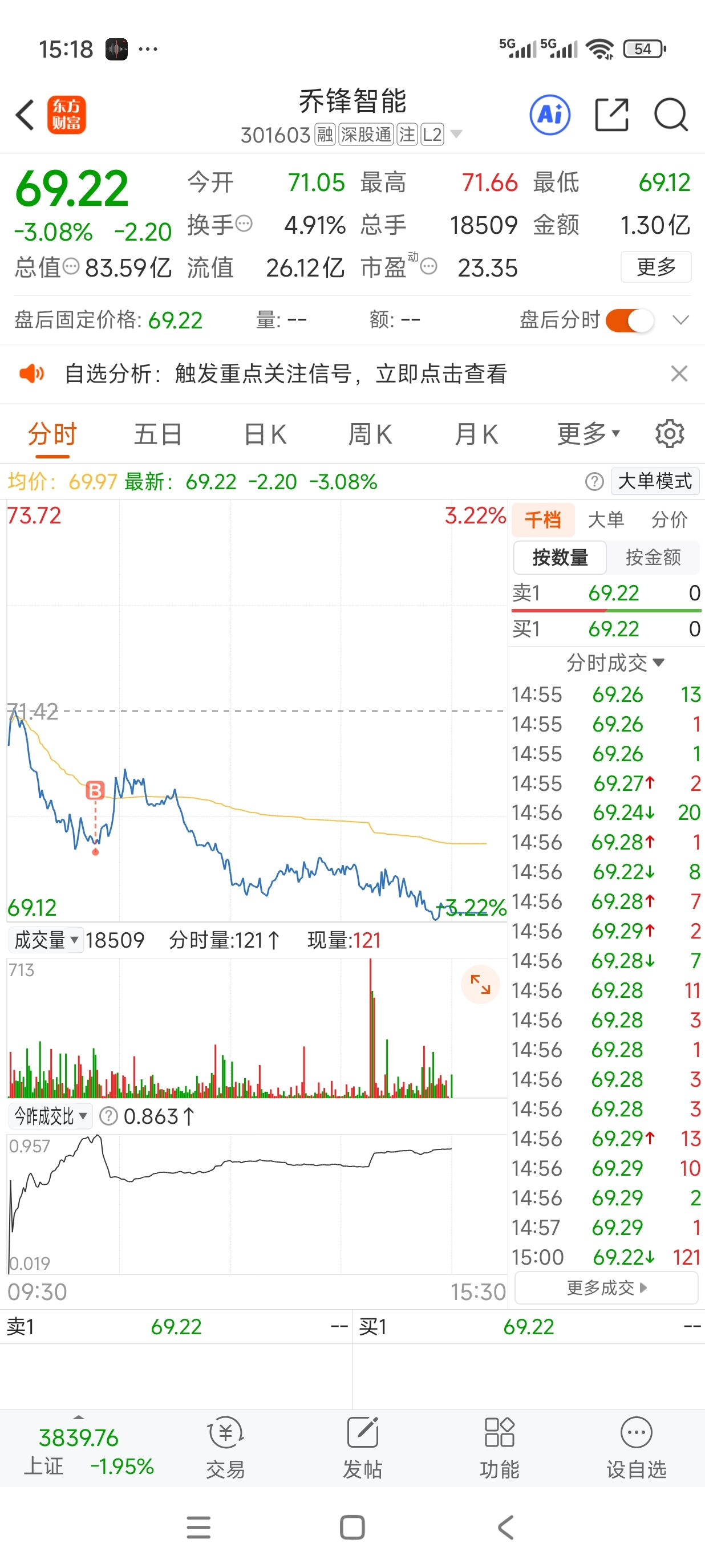 $乔锋智能(SZ301603)$ 等了好久终于到建仓位置了,大家不要慌没有只涨不跌的票,也没有只跌不涨的票。你不可能每次都买在低点也不可能每次都卖在高点,唯一能做的就是管理好你的仓位。此票年报有高送转预期看得上的兄弟可以慢慢建仓波段做t拿到春暖花开的季节应该会有所收获。