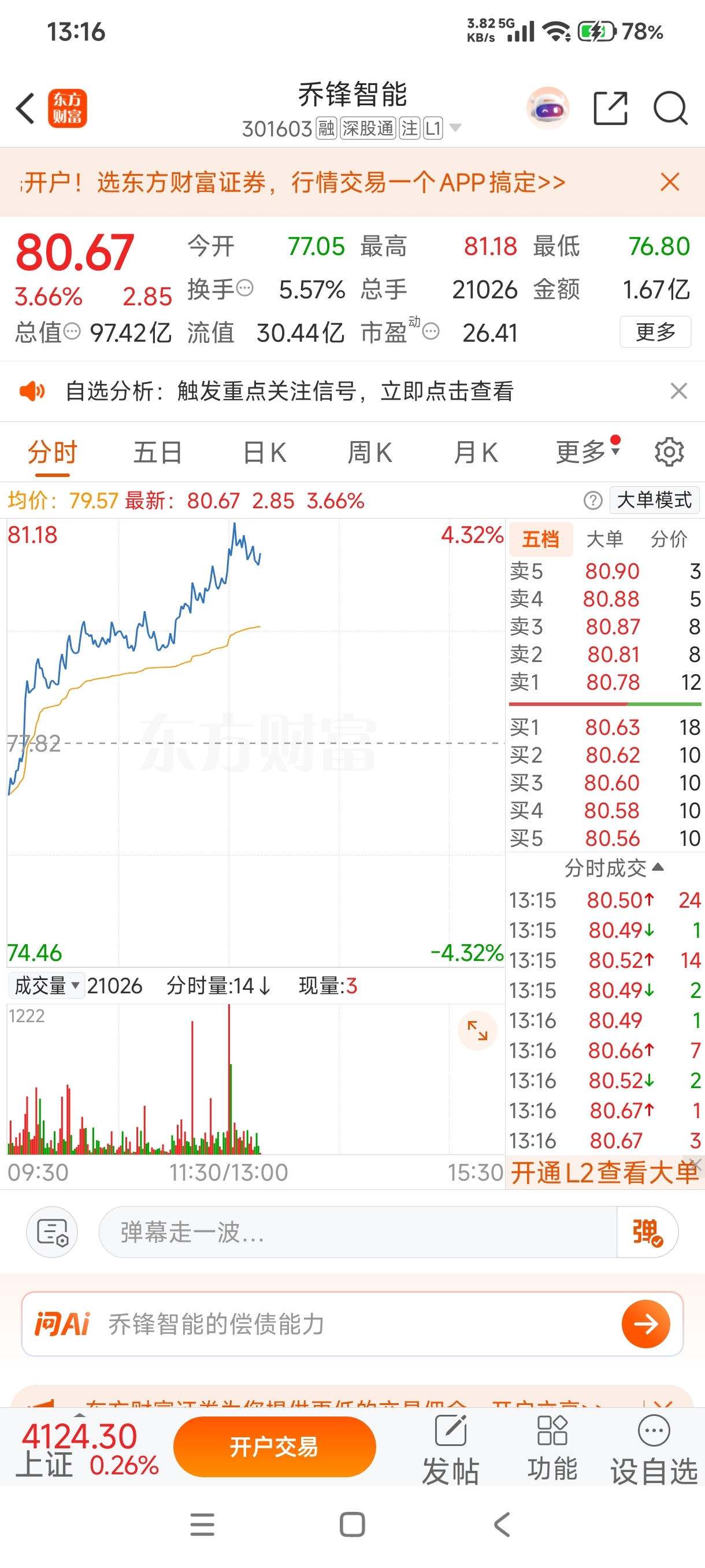 $乔锋智能(SZ301603)$ 机器单好多