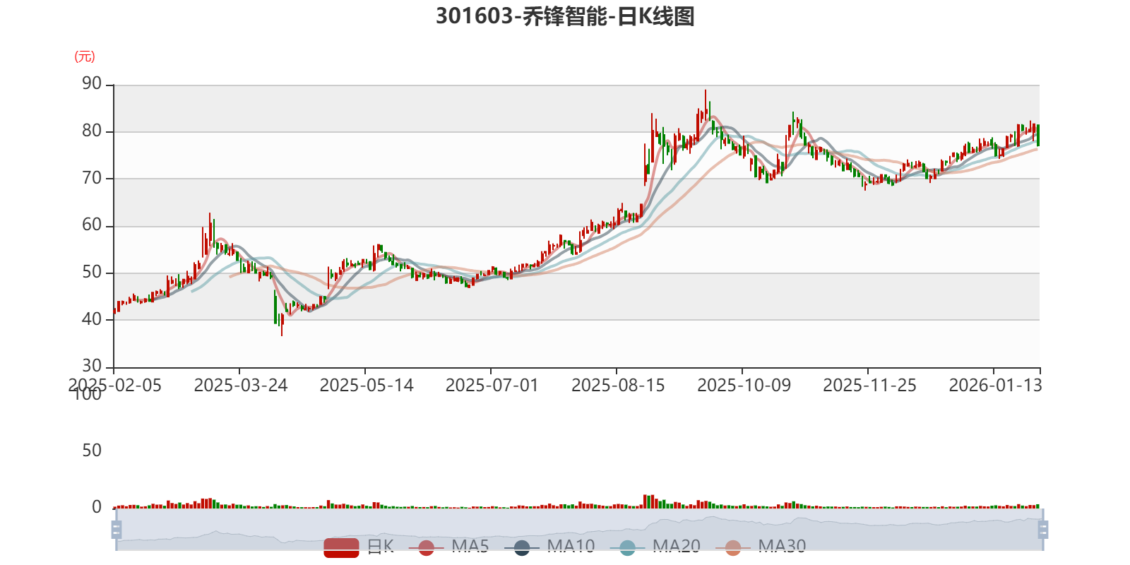 中证智能财讯乔锋智能(301603)1月28日晚间披露2025年度业绩预告,预计2025年归母净利润3.1亿元至3.7亿元,同比增长51.04%-80.27%;扣非净利润预计3亿元至3.6亿元,同比增长51.49%-81.79%。以1月28日收盘价计算,乔锋智能目前市盈率(TTM)约为25.16倍-30.03倍,市净率(LF)约4.02倍,市销率(TTM)约3.82倍。