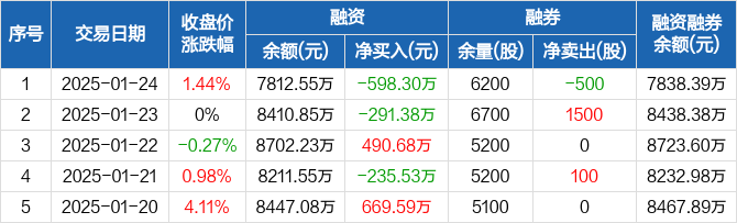 绿联科技:融资净偿还598.3万元,融资余额7812.55万元(01-24)