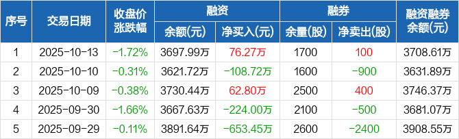 绿联科技:融资净买入76.27万元,融资余额3697.99万元(10-13)