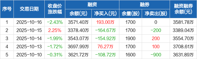 绿联科技:融资净买入193万元,融资余额3571.4万元(10-16)