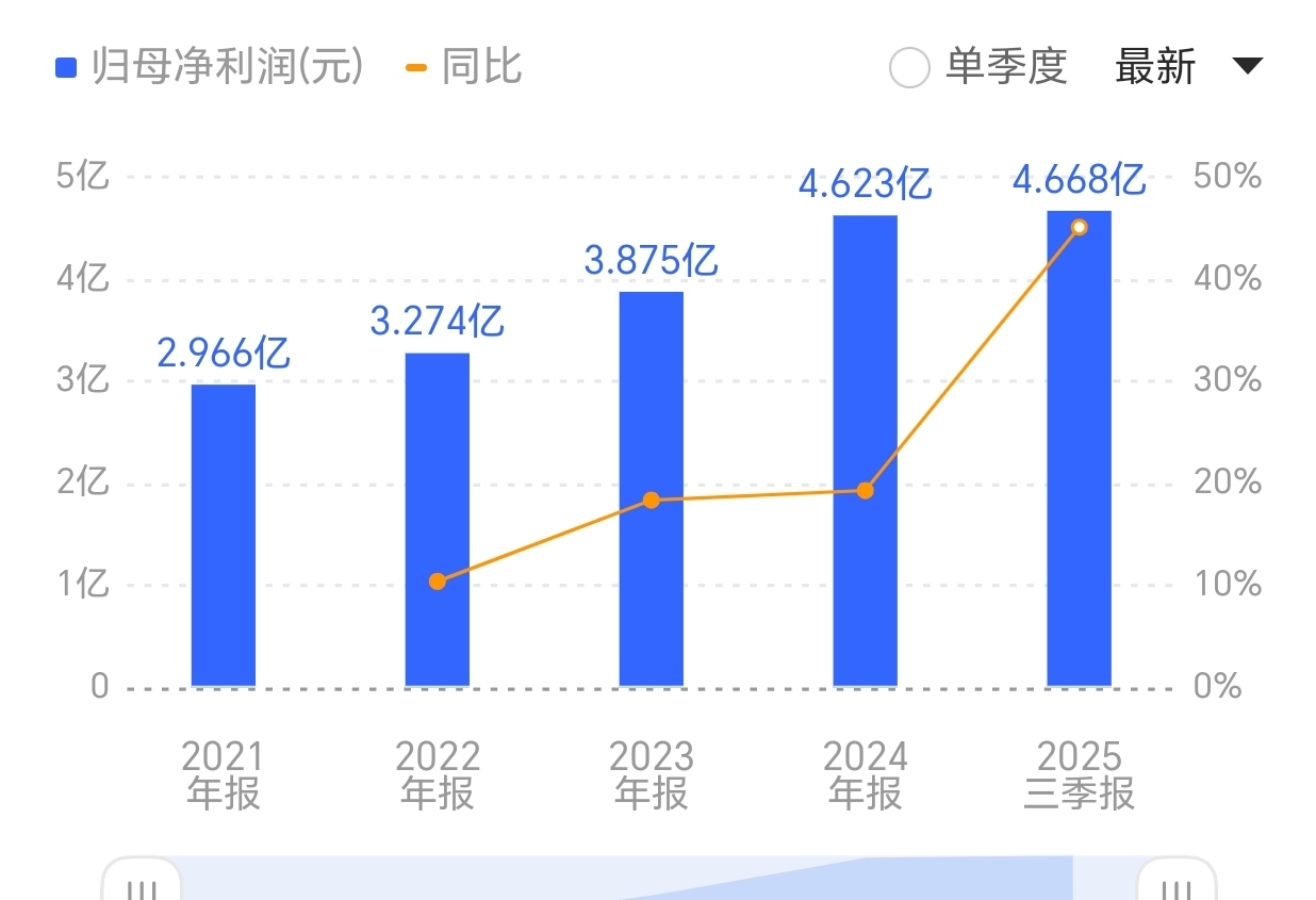 难得的好股,业绩近几年都稳步增长没有起起落落,今年同比环比加速增长,股价上涨是必