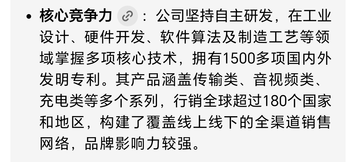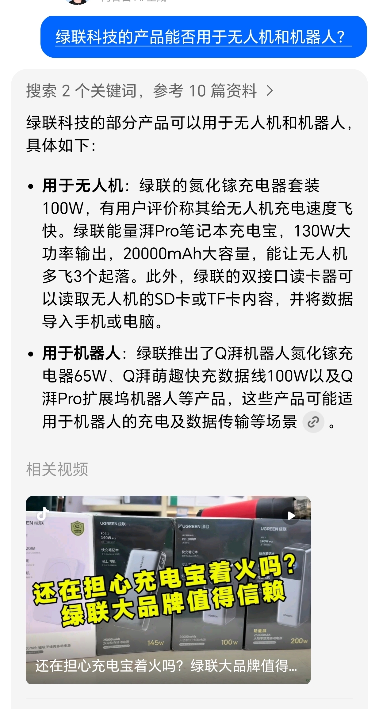 $绿联科技(SZ301606)$ 绿联除了手机充电,还可给无人机,机器人充电,这市场会越来越大,而180多个国家和地区销售,知名度也越来越高,绿联产品正如白酒中的茅台,手机中的华为,它必为电子产品配件中的王者,市值必上千亿