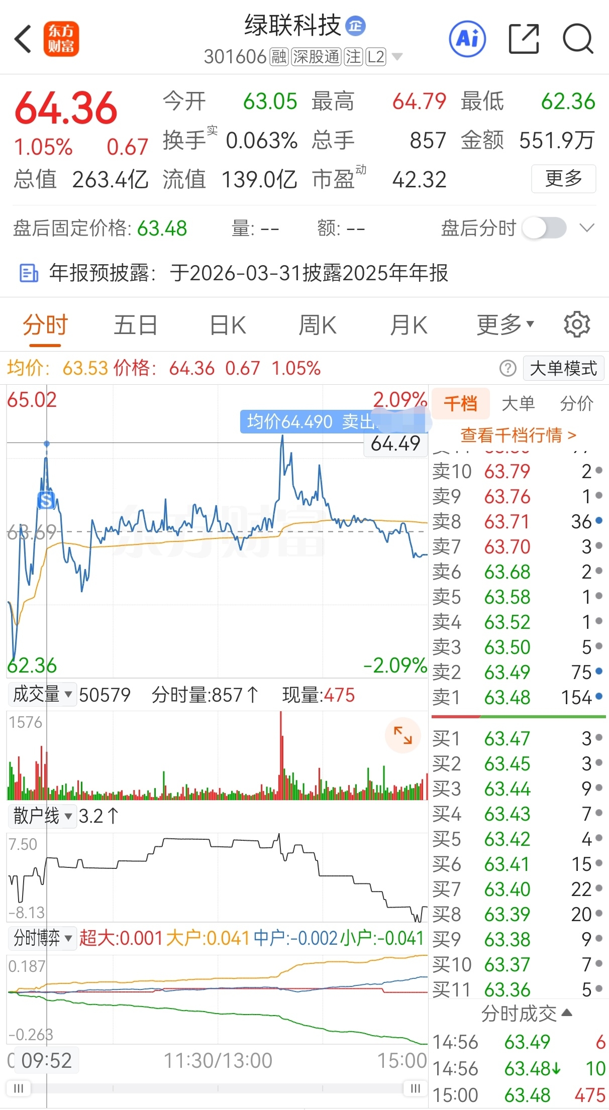 $绿联科技(SZ301606)$ 今买明卖,63.69买,64.49卖,实盘隔夜套利绿联科技,成功收米走人!