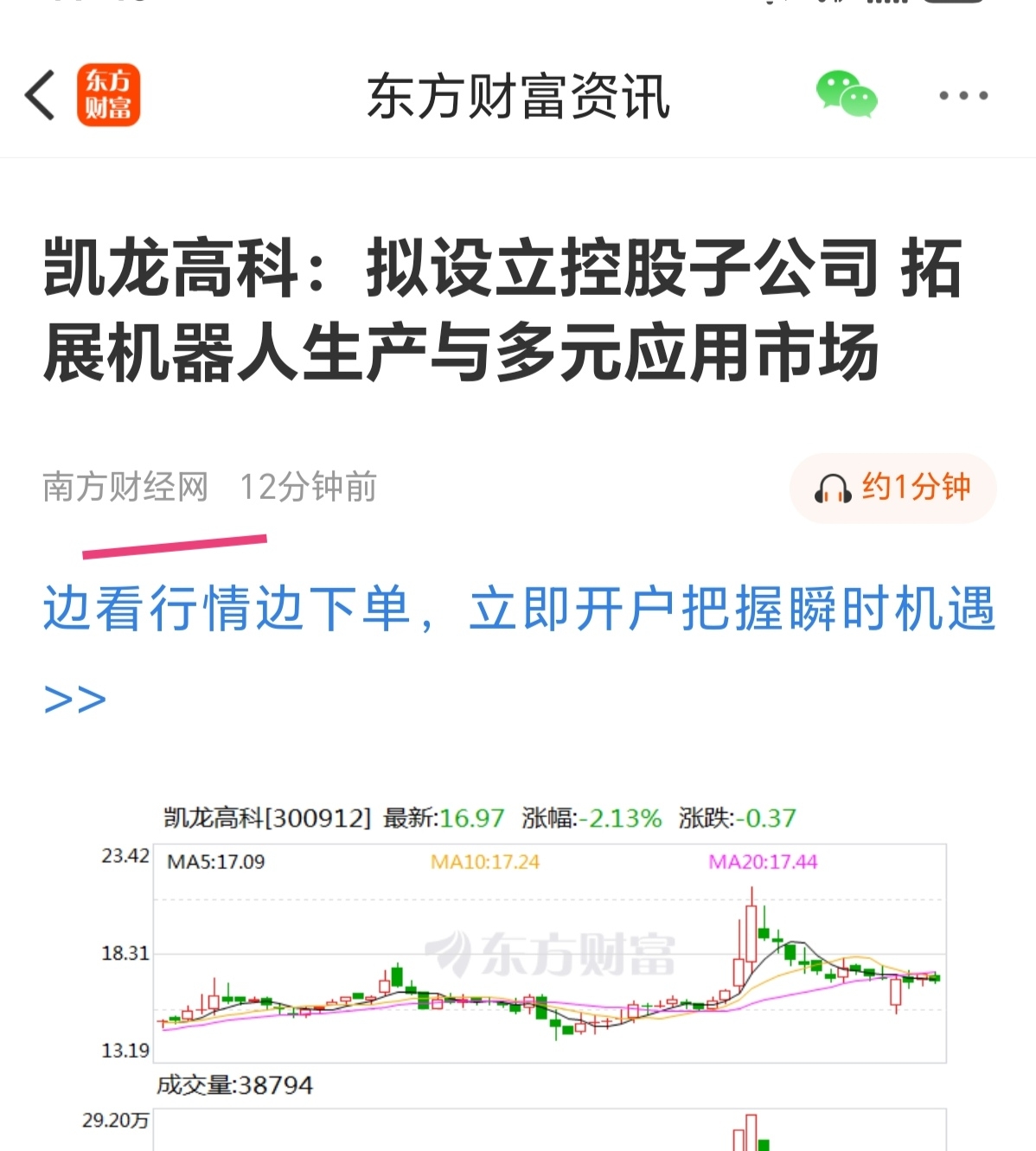 收盘后超级大利好,凯龙高科成立人形机器人公司,机器人概念,总市值才19亿,五天均