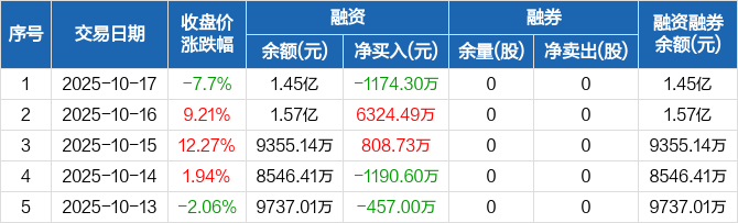 富特科技:融资净偿还1174.3万元,融资余额1.45亿元(10-17)