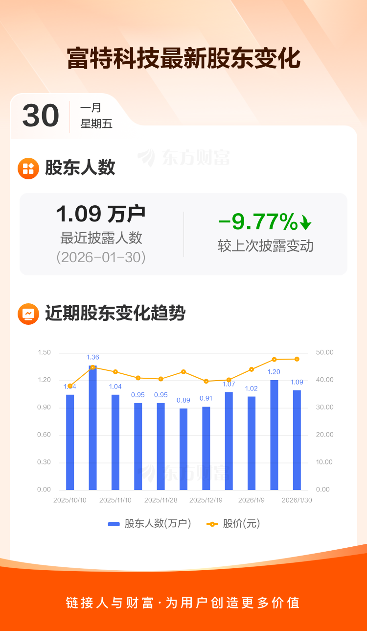 富特科技:截至1月30日最新股东户数1.09万户,较上期减少9.77%