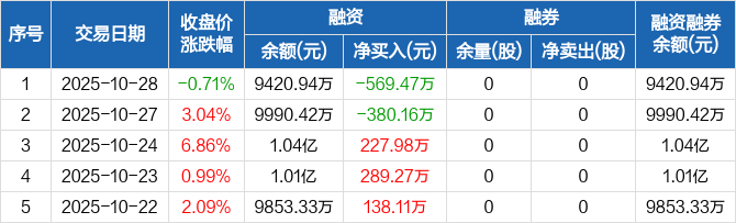 博实结:融资净偿还569.47万元,融资余额9420.94万元(10-28)