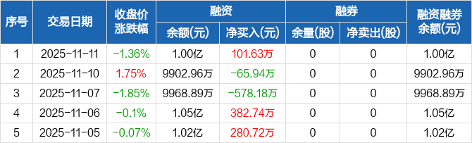 博实结:融资净买入101.63万元,融资余额1亿元(11-11)
