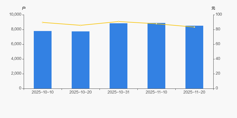 截至2025年11月20日,公司最新总股本为8899万股,其中流通股本为3993.72万股。户均持有流通股数量由上期的4492股上升至4691股,户均流通市值39.06万元。