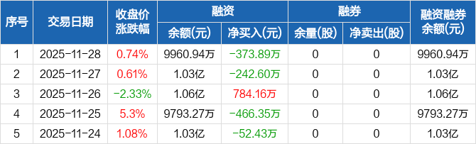 博实结:融资净偿还373.89万元,融资余额9960.94万元(11-28)