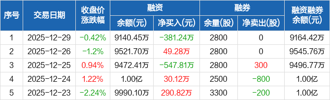 博实结:融资净偿还381.24万元,融资余额9140.45万元(12-29)