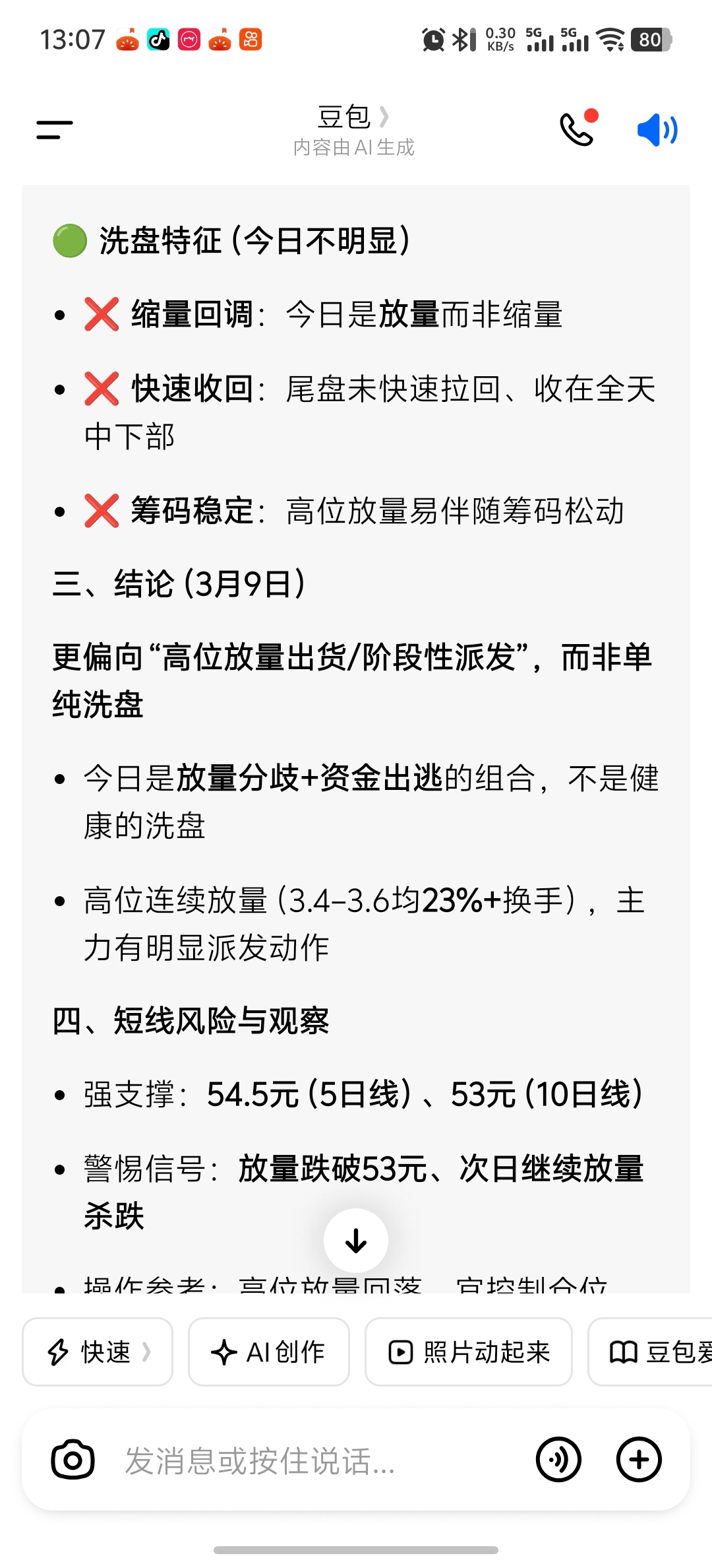 豆包说今天是高位放量出货!